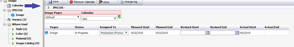 Как только изображение/стиль/или же любая другая задача привязана к календарю, в пункте Calendar показывается соответствующий элемент с полями: Pages, Status, Assigned To, Planned Start, Planned End, Revised Start, Revised End, Actual Start, Actual End.