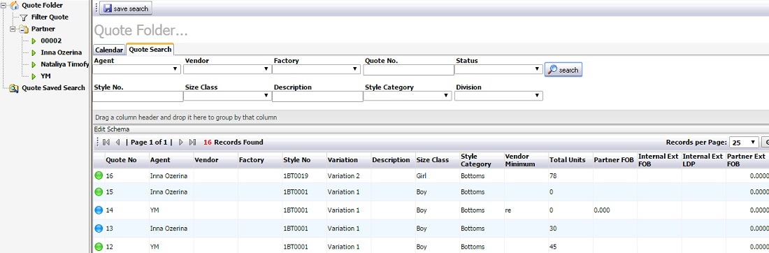 - Partner - список всех квот. Вкладки: Calendar - календарь квот, Quote Search - список квот