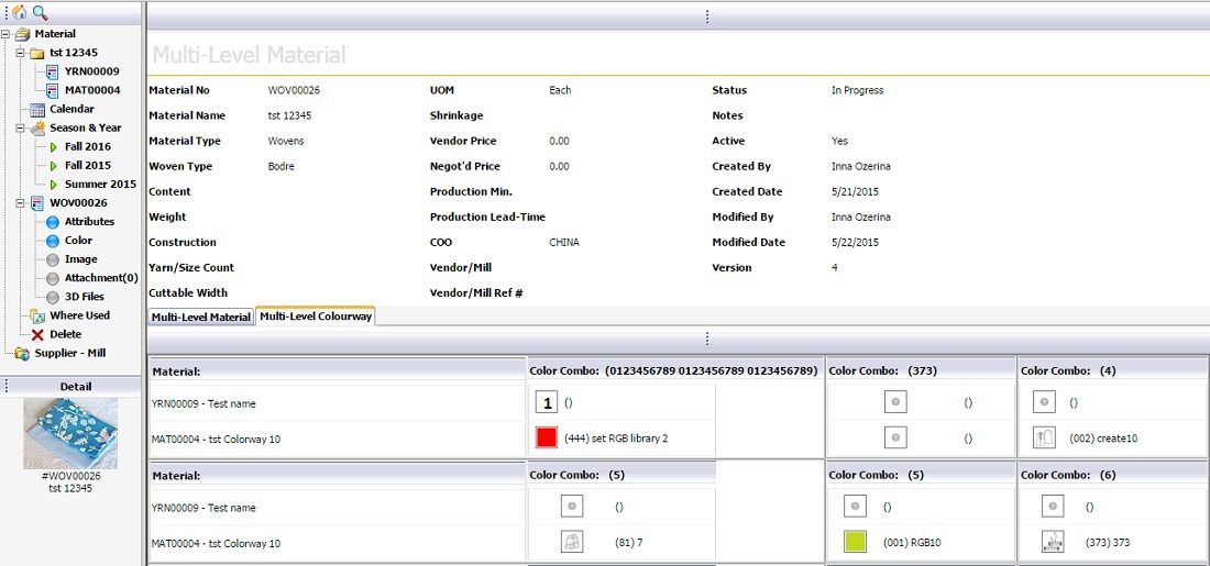 - В Style Folder: Bill of Material. Если в BoM добавлен многокомпонентный материал, то пользователь может его развернуть и просмотреть "подматериалы" во вкладке Mat View.