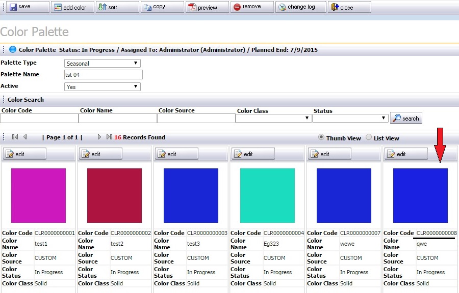 На скриншоте ниже создается цвет с Color Name "qwe". Значение Color Code выставлено по умолчанию AUTOID.